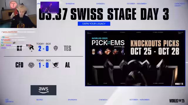 08:44:45KT hat bisher nur einen Einzelkill abgegeben und obwohl Drake und Goobies an den Gegner gingen, konnten sie den Bot-Turm sichern. Das Spiel ist ausgeglichen, und Corki nähert sich seinem Item-Power-Spike, was für zukünftige Teamfights entscheidend sein wird. Es wird klargestellt, dass es sich um das erste Best-of-3 der Worlds handelt, was bedeutet, dass jedes Spiel von großer Bedeutung ist und es keine 'Non-Finance-Games' gibt, abgesehen von den Best-of-Ones. Die Regeln für das Weiterkommen und Ausscheiden in der Swiss Stage werden erläutert: Um weiterzukommen, muss ein Team ein Best-of-3 gewinnen, um auszuscheiden, muss es ein Best-of-3 verlieren. Die Gewinner der heutigen Spiele ziehen ins Viertelfinale in Shanghai ein, was die hohe Relevanz der Matches unterstreicht.