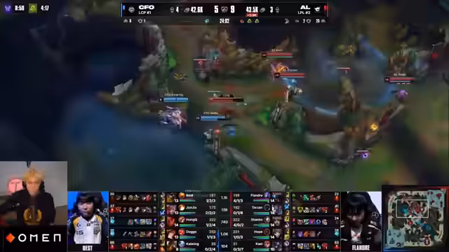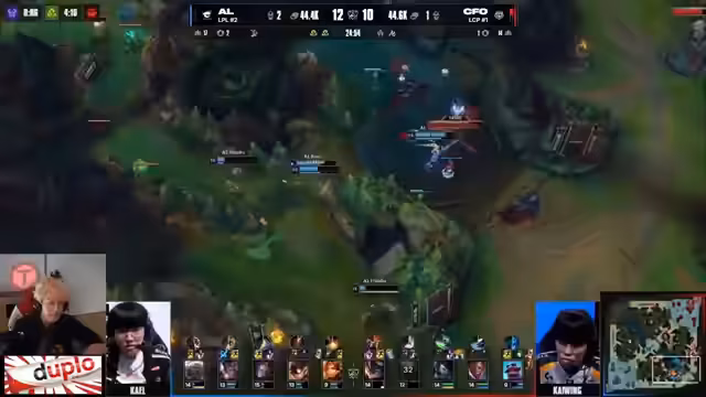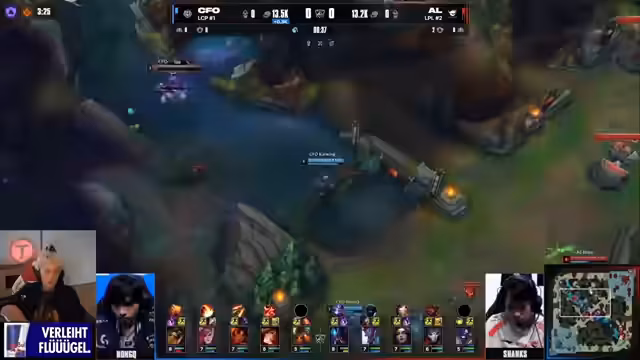 12:25:08Die Goldkurve und die Win Expectancy zeigen, dass Animons Legends nun als Favorit gilt. Trotz eines starken Kampfes von CFO, bei dem Trundle eliminiert wird, kann Animons Legends durch Shanks' LeBlanc einen Double Kill erzielen und den Kampf für sich entscheiden. CFO muss nun dringend Nashor forcieren, um das Spiel zu drehen, da Animons Legends mit jedem verstrichenen Moment stärker wird. Die schlechte Vision von CFO rund um Nashor wird als wiederkehrendes Problem identifiziert. Animons Legends, angeführt von Coach Tabe, zeigt sich als starkes Team, das bereits Gen.G. besiegt hat. Die Serie ist ausgeglichen, und die LPL beweist ihre Stärke. Trotz eines erneuten Versuchs von CFO, Nashor zu starten, wird Rest von Shanks' LeBlanc eliminiert, was Animons Legends die Drachenseele sichert. Ein entscheidender Teamfight am Nashor führt zu einem 4:0 für Animons Legends, die damit die Serie gewinnen und ins Viertelfinale einziehen.