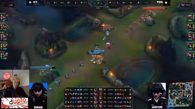 01:28:34Peter nutzt Exhaust, was durch Summoner Spellbook akzeptabel ist. Cream stirbt in der Midlane, während er den Outer Turret verteidigt, was als 'illegal' bezeichnet wird, da Nash am Leben ist und Top E-Sports diesen schnell verlieren könnte. Top E-Sports hat bisher dominanter gewirkt, während KT schwierigere Early Games hatte. Hang's 'disrespectful' Play, bei dem er versucht, Corki in der Midlane zu töten, wird als entscheidender Fehler angesehen, der das Spiel aus den Angeln hebt. KT bestraft dies wundervoll und erhält Nash sowie einen 8000 Gold-Vorsprung. Top E-Sports' Versuche, auf einen GA-Wukong zu engagen, werden als 'sehr geil für KT' und als 'fix da shit' für Top E-Sports bezeichnet. KT ist auf bestem Weg nach Shanghai und ins Viertelfinale. Es wird diskutiert, ob Top E-Sports wirklich gut ist oder nur gute Matchups hatte, da ihre Stärken im Early Game und Teamfighting in diesem Spiel nicht zum Tragen kamen.