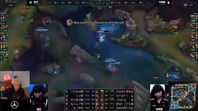 09:39:05KT Rolster zeigte eine starke Leistung, insbesondere Peter mit seiner Dreimann-Kombo, was im Kontext der historischen Unerfolgsgeschichte von KT seit 2018 besonders hervorzuheben ist. Top E-Sports, die dieses Jahr Winter-Champion in China wurden und als Favoriten galten, wirkten hingegen ideenlos und machten entscheidende Fehler. Ein Big Cross-Map-Play von KT führte zum Tod von Ryze, während KT den Herold sicherte und damit die Quest gewann, obwohl sie den Top-Turm verloren. Die Definition von 'Meta' als 'Most Efficient Tactic Available' wurde erläutert, um zu erklären, warum bestimmte Champions bevorzugt werden. KT dominierte das Spiel, sicherte sich Drachen und Kills, während Top E-Sports Schwierigkeiten hatte, ihre Matchups zu lösen und ihre Vorteile zu nutzen. Kanavi, bekannt für seinen starken Zed, wirkte in diesem Spiel schwach, und 369 von Top E-Sports traf fragwürdige Entscheidungen, indem er K'Sante im Split-Push hielt, während wichtige Teamfights um Objectives stattfanden.