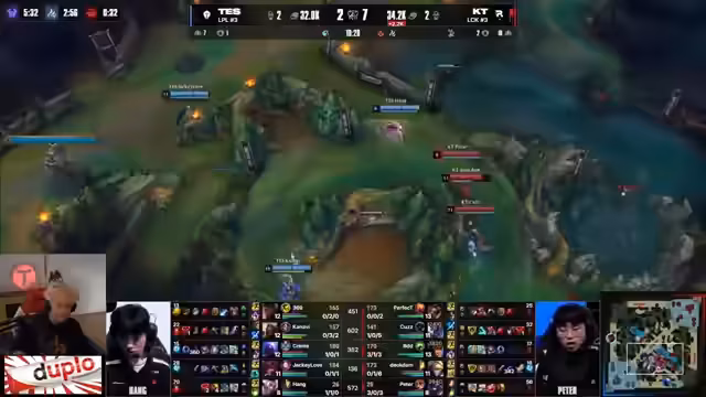 09:32:34KT Rolster sicherte sich den ersten Drachen und nutzte Laneswaps, um Vorteile zu erzielen. Ein großer Teamfight entbrannte um die Goobies, bei dem Hang von Top E-Sports starb und Kanavi ebenfalls getötet wurde, nachdem er seinen Schatten verschwendet hatte. Trotzdem gelang es Top E-Sports, einen Kill zu sichern, aber KT Rolster sicherte sich zwei der drei Goobies und war auf dem besten Weg, die Quest abzuschließen. Die Diskussion über die Bedeutung von Objectives (Drachen, Herold, Nashor, Goobies) und Türmen als separate Quest-Elemente verdeutlichte die strategische Tiefe des Spiels. Ryze auf der Top-Lane zeigte sich stark gegen Renekton, was seine Rolle als Top-Laner in früheren Metas unterstrich. Ein weiterer Drache ging an Top E-Sports, da KT zu spät reagierte, was zu weiteren Teamfights und Kills für KT führte. Peter von KT zeigte eine beeindruckende Dreimann-Kombo mit Alistar, was die Stärke des koreanischen Außenseiters unterstrich.