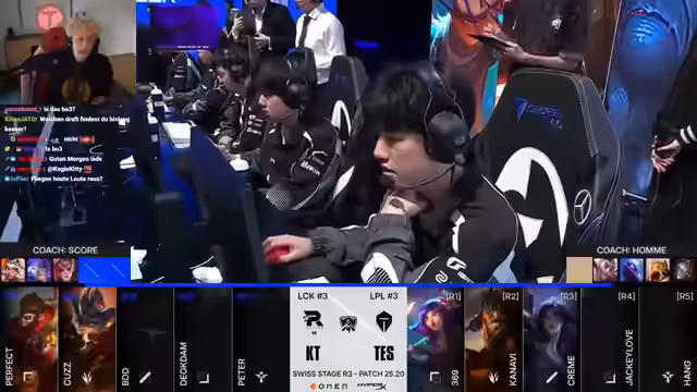 09:24:26Die Teamkomposition von KT Rolster wurde gelobt: Trundle ist effektiv gegen K'Sante, Kassiopeia stark gegen Rakan, Ryze und Zed, und Ezreal bietet Sicherheit gegen Assassinen. Obwohl Top E-Sports auf dem Papier stärkere Einzelpicks hatte, setzte KT auf Synergien und Counter-Picks, was die rote Seite oft auszeichnet. Top E-Sports galt als leichter Favorit mit einer 60-40-Chance, aber KT hatte sich in früheren Spielen als stark erwiesen. Das Spiel begann mit einem Fokus auf Level-1-Plays, wobei Rakan von Top E-Sports versuchte, Wards zu setzen. Eine Diskussion über die Wichtigkeit von Cleanse für Zeri gegen diverse CC-Champions wie Alistar, Kassiopeia und Renekton zeigte die strategische Tiefe des Drafts. Die Bedeutung von Ghost wurde hierbei als weniger relevant eingestuft, da Cleanse in diesem Matchup essenziell ist.
