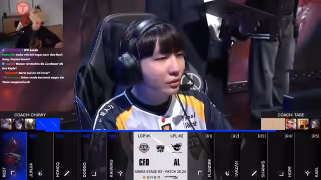 02:37:09Das zweite Best-of-3 des Tages steht an, mit Anyone's Legend gegen CFO. Beide Teams hatten einen anspruchsvollen Spielplan. Kael von Anyone's Legend wird als MVP hervorgehoben, der in beiden Spielen mit Nico und Poppy beeindruckende Leistungen zeigte. Er hat maßgeblich dazu beigetragen, dass Anyone's Legend Koreas zweit- und erstplatziertes Team besiegen konnte. Heute tritt er gegen Kaiwing von CFO an. CFO überrascht mit einem Wechsel im Top-Lane, indem Dresd statt Driver spielt, obwohl Driver in den Best-of-Ones sehr gut performte. Die Diskussion um Sechs-Mann-Roster bei CFO wird thematisiert, wobei die Vorteile der Analyse durch den Coaching-Staff und die Nachteile der geringeren Synergie und Spielerfahrung abgewogen werden. Die Draft-Phase für das Match beginnt, mit einem Fokus auf Corki und Nami, wobei die Wahl von Nami als Support in Kombination mit Corki und Sion auf der Top-Lane als ungewöhnlich und potenziell ineffektiv kritisiert wird. Nami, die normalerweise ein starker Laning-Champion ist, scheint in dieser Konstellation ihren Mehrwert zu verlieren, besonders wenn Lanes getauscht werden.