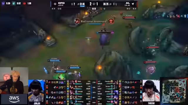 12:14:19Ein wichtiger Kill auf der Toplane für CFO nach einem gelungenen Catch gleicht das Spiel wieder aus. Beide Teams tauschen Schläge aus, wobei der Drache für einen Kill auf der Toplane geopfert wird. Der Mittelturm und der Herald werden als entscheidend für den weiteren Spielverlauf angesehen, um das Spiel ins Chaos zu stürzen und Flankierwinkel für LeBlanc und Talia zu schaffen. Ein Zehn-Mann-Teamkampf um den Herald entscheidet sich für CFO, die den Herald erobern und den Mittelturm zerstören können. Trotz dieses Erfolgs verlieren Vi und Talia in einem anschließenden Kampf, was den Vorteil für CFO schmälert. Animons Legends nutzt die Fehler von CFO aus, um sich einen Triple Kill zu sichern und den Goldvorsprung von CFO zu eliminieren. Das Spiel wird zunehmend schwieriger für CFO, da Animons Legends durch Drachen und Trundle an Stärke gewinnt.