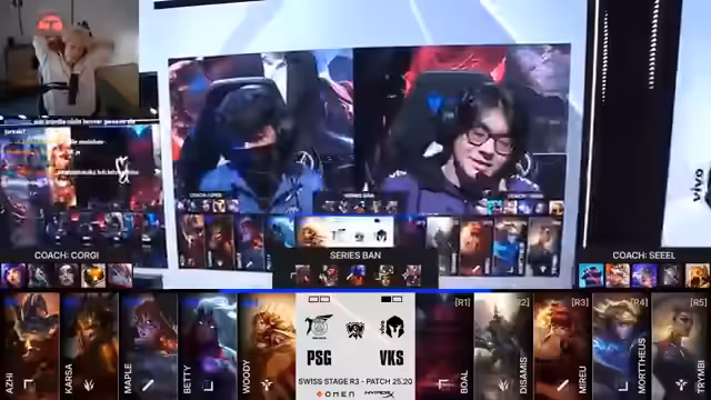 03:37:33Die Analyse der Champion-Picks und Bans zeigt, dass auf der roten Seite viele Pflicht-Bans wie Orianna und Ryze zu sehen sind, wobei Ryze bereits nicht mehr verfügbar ist. Die Diskussion dreht sich um den dritten Bann der Vio-Kid-Stars, der als einziger echter Bann gilt, der auf den Gegner zugeschnitten ist. Die Wahl fällt auf Yuumi, was die First-Pick-Phase schwieriger lesbar macht. Es wird über beliebte Champions wie Jarvan und Pantheon spekuliert, wobei Jarvan bereits ein Spiel gewonnen hat, trotz einer schlechten Gesamtstatistik von 1-9. Die Hovers für Zed werden als unwahrscheinlich für einen First-Pick eingestuft. PSG setzt auf Aurora, eine flexible Wahl, die sowohl Midlane als auch Toplane spielen kann, aber wahrscheinlich in der Midlane eingesetzt wird. Die Situation von PSG wird als kritisch beschrieben, da sie bereits ein Spiel verloren haben und ein weiterer Verlust das Ende ihrer Worlds-Teilnahme bedeuten würde. Die Wahl von Annie für X wird kritisiert, da der Champion als nutzlos und zu schwach empfunden wird, besonders im Vergleich zu Pantheon, der in der ersten Rotation gepickt wurde. Das Matchup Annie gegen Aurora wird als schwierig für beide Seiten eingestuft.