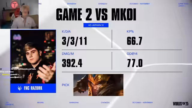 MKOI vs FNC: LEC-Duell bei Worlds 2025