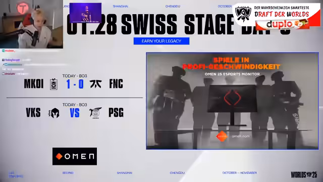 Die Worlds 2025 in Peking sind Schauplatz eines spannungsgeladenen LEC-Duells zwischen MKOI und Fnatic. In den ersten Ausscheidungsspielen der Swiss Stage ringen beide Teams um den Verbleib im Turnier. Vor dem Match wird das 15-jährige Jubiläum der Worlds mit einem Rückblick auf legendäre Spielzüge zelebriert, was die Atmosphäre zusätzlich anheizt.