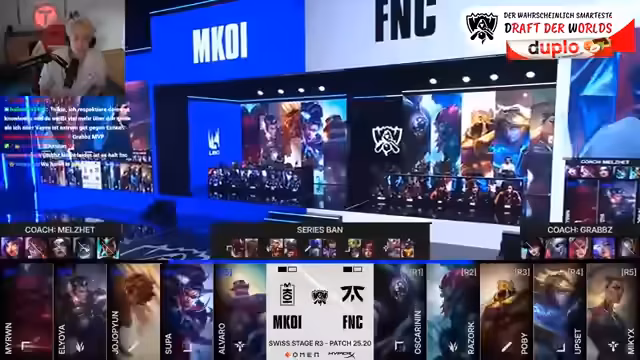08:39:16Die Team-Kompositionen werden detailliert analysiert, wobei Movistar Koi mit Vayne und Ornn auf Hyperscaling setzt, während Fnatic mit Trundle und Azir eine starke Redside-Draft hat. Die Stärken und Schwächen von Vayne gegen Ezreal werden erörtert, wobei Vayne zwar Ezreal im 1-gegen-1 besiegen kann, aber Schwierigkeiten hat, die Wave zu kontrollieren und den Poke von Ezreal zu überwinden. Es wird betont, dass Vayne ein Champion ist, der auf zwei Items stark wird und verschiedene Builds zulässt. Die Spannung steigt, da für eines der europäischen Teams die WM endet. Eine Abstimmung im Chat zeigt eine Präferenz für Blueside, die eine höhere Win-Rate bei der WM hat. Die persönliche Verbundenheit des Streamers zu Upset und Fnatic wird durch Anekdoten aus seiner eigenen E-Sport-Vergangenheit deutlich, insbesondere ein gemeinsames Turnier 2015 in Dänemark. Die Bedeutung von Upset als AD-Carry und seine bisherige Karriere ohne große Trophäen werden hervorgehoben, mit einem Vergleich zu Zeka, der unerwartet die Worlds gewann. Die Hoffnung auf ein Comeback von Fnatic und die Verbesserung ihres Mentals nach Spiel 1 wird geäußert. Der Fokus verschiebt sich auf die Spielmechaniken und Item-Builds, insbesondere die Rolle von Sheen für Champions wie Jax, Trundle und Ezreal. Die Bedeutung von Base AD und Level-Spikes für Sheen-Nutzer wird erklärt. Die frühe Spielphase zeigt einen Schlagabtausch, bei dem Pobi trotz CS-Nachteils einen Solo-Kill auf der Botlane erzielt, was als Zeichen seiner Entschlossenheit gewertet wird, gegen sein Idol zu spielen. Movistar Koi liegt zunächst zurück, kann aber durch geschickte Plays einen Goldvorteil erlangen. Ein aggressiver Fehler von Oscar auf der Toplane wird kritisiert, da er die Wave ignoriert und in einen Kampf im Fluss geht, während sein Team nicht vollständig anwesend ist. Der Drachenkampf wird als entscheidend angesehen, wobei Fnatic Schwierigkeiten hat, die nötige Macht für Teamfights zu entwickeln.