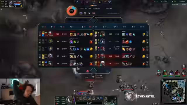 09:28:04Die Pause bei 34k ist auf technische Probleme zurückzuführen, vermutlich durch zu lautes Publikum oder White-Noise verursacht, die Audioübertragung auf der Bühne stören. Der Streamer hat das Gefühl, das Spiel fühle sich sehr fanatisch an, und empfiehlt, ein winnendes Teamfight-Konzept zu verfolgen, da die gegnerische Rotor-Top-Kombination extrem gefährlich ist und durch Auto-Attacken schnell Lebenspunkte dezimiert.