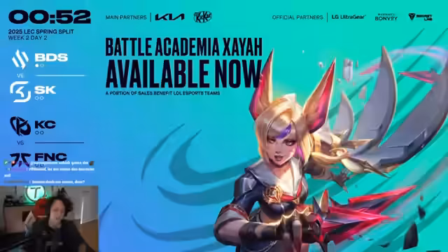 09:29:43Es handelt sich um ein Ligaspiel der LEC-Spring-Phase, die im Best-of-3-Format abläuft. Jede der neun Begegnungen ist entscheidend, da die Top sechs Teams in die Playoffs einziehen. Nach einer Audio-Behebung wird das Match zwischen den europäischen Top-Teams Fnatic und K-Corp fortgesetzt, was es zu einem Spiel der Woche macht, da der Gewinner direkte Vorteile für internationale Turniere wie den Saudi-Cup oder MSI erlangt.