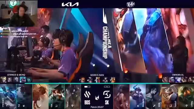 07:42:28SK Gaming plant einen Bar Nash, wird aber durch gezielte Pokes und gute Positionierung von BDS gestoppt. Ein riskanter Angriff von Genax wird von Jenax abgewehrt, der an seiner Position starkes Damage zeigt. Game 1 geht an BDS. Für das entscheidende Game 2 wird das Fearless-Pick-System eingeführt, bei dem alle Champions aus Game 1 gesperrt sind. Analystisch wird der Champion Thresh im Pro-Play als zu stationär für die aktuelle Meta kritisiert.