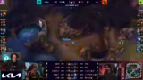 10:11:35Nach den ersten Kämpfen wechselt die Strategie komplett. Das Spiel wird zu einer reinen Skalierungsphase. Beide Teams verharren passiv, warten auf Fehler des Gegners und maximieren ihr Farming. K-Cops Komparsition ist besonders anfällig, da sie inaktiv bleiben und keine richtige Frontline aufweisen. Fnatic nutzt diese Passivität, um ihre Champions durch den passiven Farm zu skalieren und das Spiel langsam in ihre Richtung zu ziehen.