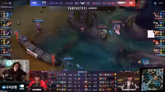 03:09:31T1 ist nervös, aber zuversichtlich, dass sie das Spiel gewinnen können. Lillia buffert ihre Wege und erhält Mikael's. Kessante flankiert Gumayusi, der Ghost nicht bereit hat. Doran springt rein und wieder raus. Ohna stiehlt den Baron Nashor. Faker flankiert Ruler, aber er macht keinen Schaden. Gen.G. gewinnt den Kampf, da Chovy ein Kanker Faker ist und Ruler ein geiler Dude. T1 kann nie gegen Gen.G. in der LCK gewinnen, stoppt sie aber bei Worlds und MSI. Faker erhält einen Arsch-Game aus Draft, hätte aber auch Victor first picken können. Gen.G. erhält Atakan und Nash, und Chovy erhält drei verschiedene Ressourcen an EXP. Gen.G. darf sich an Stats sattfressen. Duros Blitzkrank hatte viel Value in diesem Game. T1 fängt an, Zeitland zu spielen und pusht Top-Line durch, aber es ist zu spät. Bart holt Ducatantrap und Talia macht weh, weil T1 alle drei Spales braucht. T1 kann niemanden von 100 auf 0 bringen. Barth und Joanne versuchen, Viktor zu assassinaten.