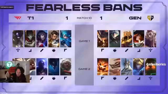 02:26:50Es wird erwartet, dass das nächste Spiel in etwa fünf Minuten beginnt, wobei die Draft-Phase etwa sechs Minuten dauern wird. Der Streamer erwartet, maximal fünf Minuten zu spät zu sein und plant, langsam zu bannen, um Zeit zu gewinnen. Es wird ironisch angemerkt, dass Faker durch einen Sightline-Fehler intet. Die Bedeutung von Ona und Goomba wird hervorgehoben, die Ruler retten und seine Summoners sichern. Es wird kritisiert, dass Ruler die gesamte Mid-Lane farmen muss und dass Nortis entweder rotieren oder Ruler mitlaufen sollte. Es wird analysiert, dass Ruler im Fokus steht und kein Flash mehr hat, was die Situation verschärft. Chovy rettet das Spiel mit einem Free Man Taunt, während Faker versucht, den Galio-Ult zu unterbrechen, aber einen Fehlklick macht. Es wird festgestellt, dass Faker sein tausendstes LCK-Spiel bestreitet. Es wird betont, dass es keine Substitution geben wird und dass Guma und Ruler gegeneinander antreten werden. T1 hat Blu-Side-Wahl und Pick-Priorität. Es wird diskutiert, welche Champions am meisten ausgedünnt sind und welche Strategien T1 verfolgen könnte, wie z.B. die Priorisierung von Aurora oder Aurelion Sol. Es wird die Frage aufgeworfen, ob Guma noch genug Champions zur Verfügung hat, und die Möglichkeit von Ezreal als Kaiser-Konter für Ruler wird in Betracht gezogen.