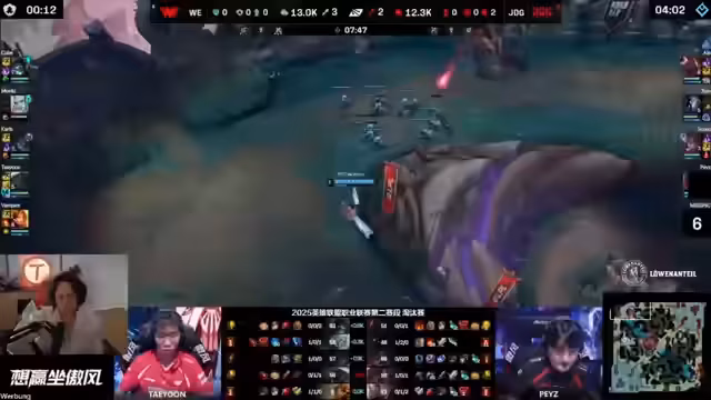 03:46:08WE besiegt JDG verdient und beendet damit deren Frühlingssaison. JDG kann nicht mehr zur MSI, zum Saudi Cup oder ins Finale der Frühlingsmeisterschaft. Die Series wird als eindeutig und dominant für WE beschrieben, die alte Legende schlug die neue Legende. Für JDG ist das bitter, da sie im Draft und während der Spiele fehlerfrei wurden, was an der starken Leistung von WE scheiterte.