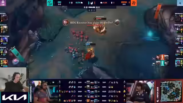 07:10:15Ein Double Kill auf der Top-Lane durch Bukada für BDS wird als exzellentes Play gelobt. Bukada wird als der beste Jungle des Westens bezeichnet, dessen Spielstil mit der Sejuani dominant ist. Dies verhilft BDS zu einem Goldvorteil und bekräftigt den früheren Transfer. Das Spiel wird von strategischen Fehlern geprägt, wie dem missglückten Jungle-Camp von Skins, der ihn ohne Flash zurückließ.