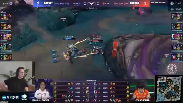 01:01:43Im weiteren Verlauf des Spiels geraten die Bros deutlich zurück, während DNF einen klaren Vorteil aufbaut. Ein entscheidender Moment ist ein Teamfight, bei dem DNF unbeschadet aus einer 4-gegen-3-Situation hervorgeht. Trotzdem wird von den Kommentatoren noch zwei Möglichkeiten für einen dramatischen Ausgang genannt: ein langer, spannender Game-Ende oder ein unwahrscheinliches Comeback der Bros, die das Spiel in ein tiefgründiges Spektakel verwandeln könnten.