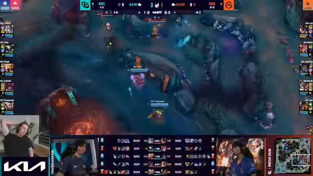 00:00:00Der Stream beginnt mit der Analyse des ersten Spiels zwischen Gen.G und Nongshim. Der Kommentator hebt die hohe psychische Stärke von Gen.G hervor, die es ihnen ermöglicht, auch in schwierigen Spielsituationen nicht den Fokus zu verlieren. Im Gegensatz dazu wird bei Nongshim festgestellt, dass ihnen es an einem entscheidenden Follow-up nach guter Initiation mangelt, was zu verlorenen Teamfights führt, selbst wenn diese vielversprechend starteten.