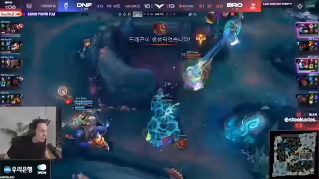 08:12:30GiantX führt eine heftige Gegenoffensive durch und erhält fünf Turrets auf der Top-Lane als Belohnung, was jedoch mit dem Verlust von Drake und Herald erkauft wird. Dieser Trade wird kritisch gesehen, da er GiantX in eine gefährliche Position bringt, bei der sie zu viele Ressourcen in einer Map-Hälfte konzentrieren, während der Gegner am anderen Ende der Map aktiv bleibt und Boarding-Möglichkeiten bekommt.