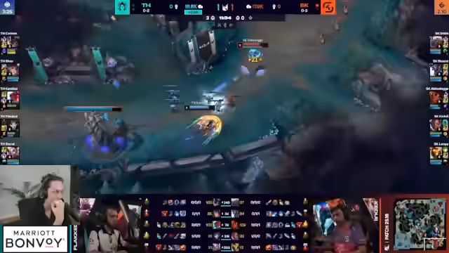 05:16:16Nach dem entscheidenden Fight fühlt sich SK Gaming in der Gewalt des Spiels. Ein Goldvorsprung von über 5.000 Gold lässt das Spiel entspannt verlaufen. Die Kommentatoren analysieren die anstehende Situation in der Gruppe. SK Gaming muss jetzt noch ein weiteres Game für den sicheren Einzug in die Playoffs gewinnen. Gleichzeitig wird die Konkurrenz, insbesondere Heretics, beobachtet. Das folgende Spiel gegen G2 wird als enorm wichtig eingestuft und wird voraussichtlich die definitive Entscheidung über die Playoff-Platzungen herbeiführen.
