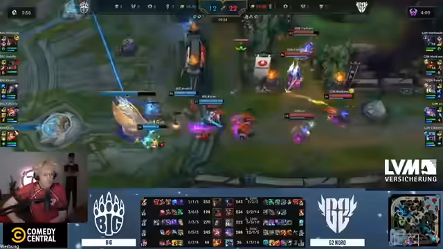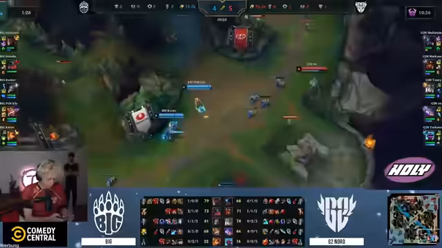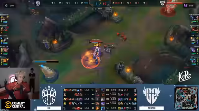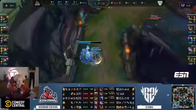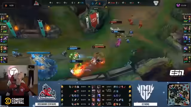 02:01:51G2 Nord dominiert das Mid-Game und kontrolliert die Objektive. Ein Nutzer beschreibt, wie G2 Nord den ersten Bloodrush mit Syndra geholt hat. Es wird auch über die Situation auf der Top-Lane gesprochen, ob Rumble gegen Syndra eine Chance hat. Die Analyse geht weiter, wie G2 Nord jetzt das Spiel kontrolliert und Ross das Gefühl hat, dass sie verlieren. Ross muss nun irgendwie ins Spiel finden.