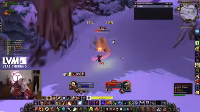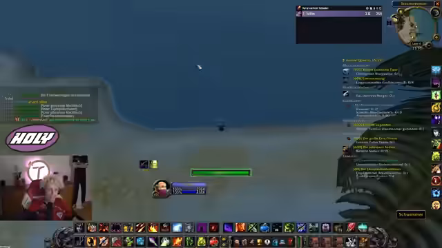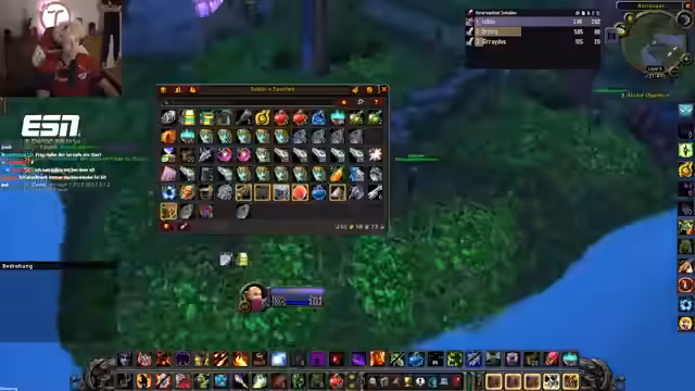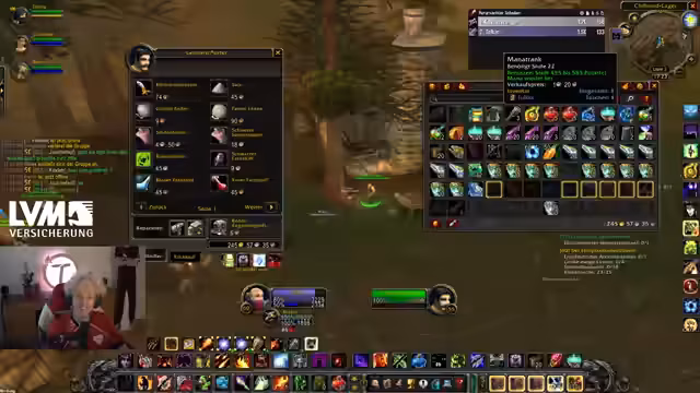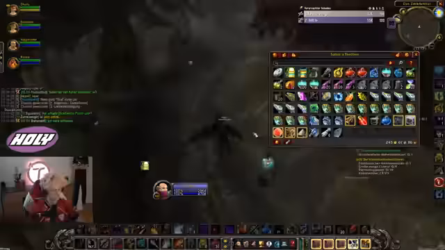 01:02:03Die Gruppe, bestehend aus dem Streamer, Toro, einem Paladine als Tank und weiteren Spielern, startet den Dungeon Scholomance, um Petri-Flaschen herzustellen. Es wird über die schwierigen Mechaniken des Bosses gesprochen und ein Makro zur automatisierten Erzeugung der Flaschen erwähnt. Während des Runs gibt es technische Unannehmlichkeiten, da der Streamer nicht permanent im Dungeon sein kann. Es herrscht ein dynamisches Miteinander zwischen den Spielern, das von Unterstützung und einem gemeinsamen Ziel geprägt ist.
