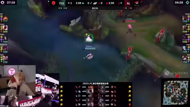 03:27:13Kanavis Tod ermöglicht es Anyone's Legend, Tempo für den Drake zu gewinnen. Trotzdem bleibt Kanavi aufgrund seines Thunder Sky-Builds für den Drake stärker. Top E-Sports startet den Drake übereifrig, was zu einem abgebrochenen Versuch führt. Ein 4-gegen-5-Sieg von Top E-Sports ohne Yorick, der weiterhin auf der Toplane farmt, wird als Team Diff bezeichnet. Kanavi erwischt Kael mit einer Q, was zu Kills führt und den Drake sichert. Yorick ist wieder bei 0 Gold und auf Augenhöhe mit Aurora. Die gewonnenen Platten auf der Toplane sind wertvoll für den Toplaner. Morgen um 8 Uhr spielt T1 gegen Gen.G. Kanavi stirbt ein zweites Mal, wodurch Top E-Sports zwar vorne bleibt, aber Anyone's Legend im Spiel gehalten wird. Victor und Cork werden als OP hervorgehoben, während Yorick weiterhin ignoriert wird. Der Streamer erzählt, dass er Anfragen für Interviews ablehnt, aber Fragen im Stream gerne beantwortet.