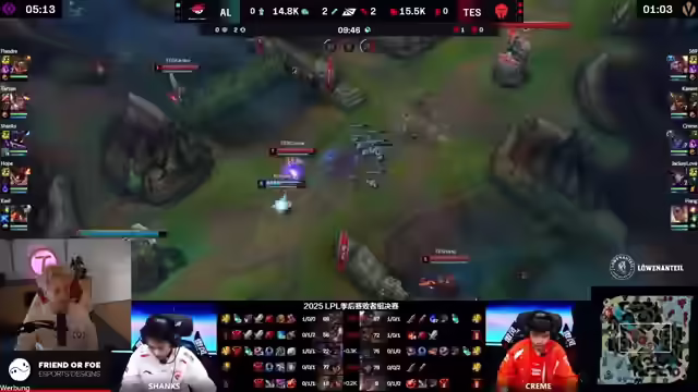 05:09:40Aktuell wird BLG in der LPL favorisiert, die im Finale auf den Gewinner des Spiels zwischen dem Wintermeister und dem Frühlingsmeister warten. Renekton wird als First Pick in Game 4 gewählt, was Takeaway von 369 ist, der Renekton liebt. Jace wird als klassische Antwort genannt, die im Laneshop auch okay ist. Es wird angemerkt, dass Gagas eher ein Weakside-Spieler ist, der Tanks bevorzugt, während On besser im Lane-Swap ist. Der Six-Pick wird als geiler Take-Away bezeichnet, da man Java und den Six nicht geben will. Es wird spekuliert, dass eine Cassopeia kommen könnte, aber Shanks' Yon-Mitlan wird mehr respektiert als seine Cassio. Nautilus wird als 6-Combo-Option genannt, die gut mit dem Ult-Combo harmoniert. K.E. geht den 10th Pick Vyga, was als cooler Pick gegen viel Mobilität angesehen wird. Es wird gehofft, dass Animus Legend das Game nach Hause holt und fünf Games liefert.