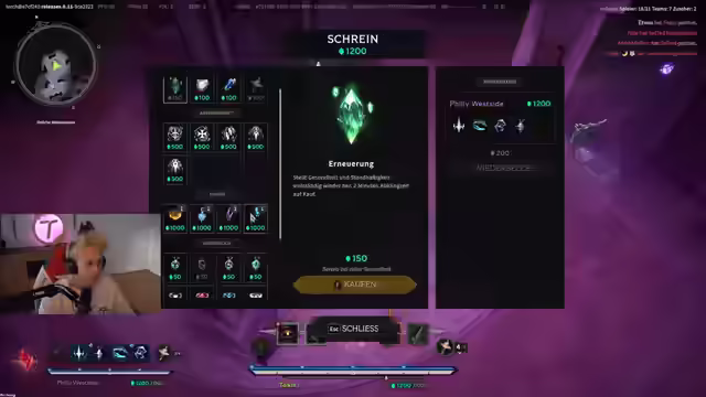08:17:50Ein Spieler mag eine bestimmte Waffe extrem, da man mit ihr die ganze Zeit angreifen kann. Es wird vorgeschlagen, dass Totes als Consumer Bill automatisch aufgesammelt werden sollten. Ein Spieler hat einen Set-Bonus erhalten: Formbar. Die Heilung durch Gegenstände und Fähigkeiten ist um 50% erhöht. Es wird beschlossen, zu einem Bucks zu rennen, der 100 Meter entfernt ist. Ein Spieler fühlt sich wie das Zahlschwein der Gruppe. Es wird festgestellt, dass die Tür gratis war. Es wird ein Team entdeckt, das ebenfalls die Quest macht. Die Gruppe kassiert Schaden, kann aber einen Paniger umboxen. Es wird festgestellt, dass das Hinrichten bugt. Es wird überlegt, ob man einfach abdrehen sollte. Ein Spieler fragt sich, wo die ganze Zeit das neue Schild herkommt.