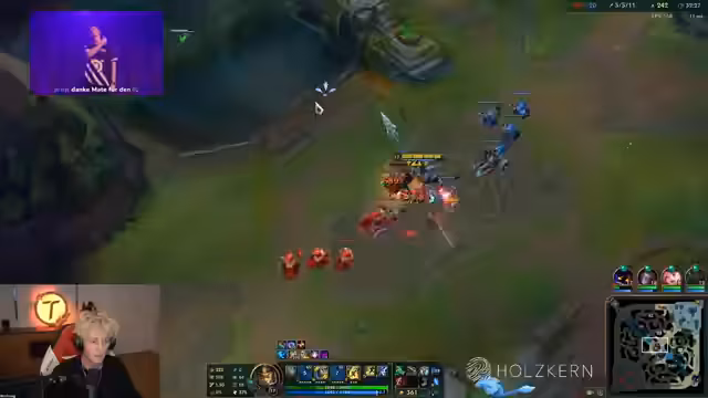 04:41:31Das mittlere Spiel konzentriert sich auf die Midlane-Duelle zwischen Orianna und Vladimir. Power of Evil spielt Vladimir gegen Danny auf Orianna, was ein schwieriges Matchup darstellt, da Vladimir früh keine Items kaufen kann. Das Team plant, Vladimir zu skalieren und auf späte Game-Phase zu setzen, während der Gegner versucht, Druck in den frühen Stadien auszuüben. Der Streamer bewertet die Chancen und Risiken dieser Strategie.