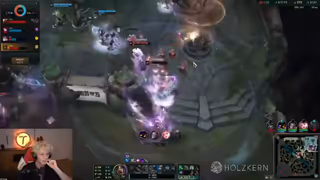 04:54:17Die aktuelle Spielrunde wird intensiv analysiert, insbesondere die Item-Käufe der Spieler. Power of Evil hat Horizon Focus erworben, darf jedoch keine weiteren T-Items kaufen, während andere Spieler wie Semblings und Soda ebenfalls Debuffs haben. Es wird hervorgehoben, dass Soda es trotz Item-Einschränkungen geschafft hat, gegen Tony und Sascha im CS-Count mitzuhalten, und Power of Evil sogar einen Vorsprung von 10 CS hat, obwohl er gerade erst sein erstes Item erworben hat. Dies deutet darauf hin, dass Danny in der Midlane stark unter Druck steht. Das Item Horizon Focus wird als sehr kostengünstig für AP-Champions wie Vladimir beschrieben, was Power of Evil ermöglicht, direkt auf teurere Items wie Deathcap zu sparen. Die Dynamik des Spiels verschiebt sich schnell, da Niko mit seinem Proto-Belt fertig ist und das Spiel zunehmend zu einem "Damm-Game" wird, was auf eine Eskalation der Kämpfe hindeutet. Die strategischen Entscheidungen bezüglich der Item-Builds und deren Auswirkungen auf die Lanes werden detailliert beleuchtet.