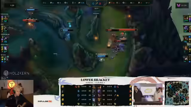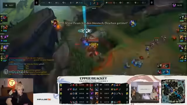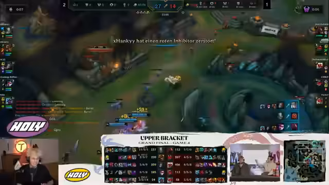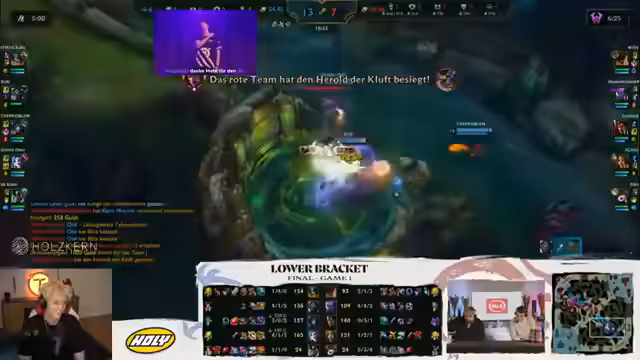 05:58:48Die Item-Strategien der Spieler werden genau beobachtet. Es wird diskutiert, ob Sola, der keine Items kaufen darf, sich für bestimmte Start-Items entscheidet, um früher seinen Kraken-Slayer zu bekommen. Ein Solo-Kill auf der Midlane und ein erfolgreicher Teamfight auf der Botlane bringen das Spiel wieder ins Gleichgewicht. Das Team von Power of Evil hat nun einen Drachen und ist in den Statistiken sogar leicht vorne. Die Bedeutung von Mordekaiser auf der Toplane für den Turm-Push wird betont. Die Leistung von Chico, der als Bronze-IV-Spieler gegen einen Grandmaster-Midlaner spielt und nur 0-1 steht, wird als bemerkenswert und 'pre-shadenswert' hervorgehoben. Die Diskussion über die Kommunikation der Teams während einer Pause zeigt die Herausforderungen und die Konzentration, die in einem Finale erforderlich sind. Die Teamfights und die Entscheidungen rund um Drachen und Barone werden kritisch analysiert, wobei die Stärken und Schwächen der Teams in verschiedenen Phasen des Spiels deutlich werden.