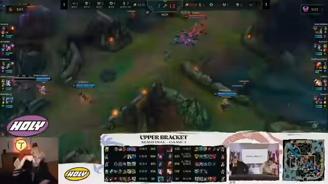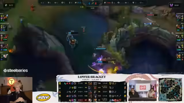 07:38:06In der Halbzeitpause wird das bisherige Spielgeschehen analysiert und die Dramatik der vielen Baron- und Dragon-Steals hervorgehoben. Es wird die ungewöhnliche Konfidenz kritisiert, mit der Malphite und Alistar als frühe Picks gewählt wurden, insbesondere gegen einen Master-Sylas-Main. Die Spieler diskutieren die psychologische Wirkung auf das gegnerische Team, wenn sie diese Runde gewonnen hätten. Es wird die Ähnlichkeit zu einem früheren Gruppenspiel erwähnt, bei dem die Teams ebenfalls abwechselnd gewannen. Der Fokus liegt nun auf den Champion-Picks für das nächste Spiel, da die Auswahl der Gegner dünn wird. Es wird spekuliert, dass Garen oder Veigar gespielt werden könnten, da andere Champions wie Lux und Malzahar bereits verbannt sind oder gespielt wurden. Die Nervosität von Aces, einem der Spieler, wird erneut angesprochen, da er in den bisherigen Spielen etwas unsicher wirkte.