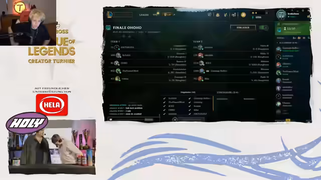 09:24:19Das Team von Henki, Nicoletta, Aces, Zola und Kiba gewinnt das KrokoBoss Invitational Turnier und sichert sich damit 20.000 Euro Preisgeld. Das Finale war äußerst spannend und von knappen Entscheidungen geprägt. Trotz der Möglichkeit, das Spiel mehrmals zu beenden, zögerten die Teams, was zu einem dramatischen Backdoor-Sieg führte. Der Streamer gratuliert dem Gewinnerteam herzlich und lobt die Leistung der Spieler. Das Turnier wird als eines der größten Preisgeld-Events im deutschen League of Legends Amateurbereich gefeiert. Die Community wird für ihre Unterstützung und ihren Humor gelobt, bevor der Stream mit guten Wünschen für die Nacht beendet wird.