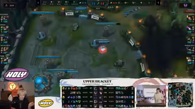 08:16:50Es wird betont, dass das Spiel eigentlich so läuft, wie die gesamte Serie erwartet wurde: Das Team mit den starken Lanes kann nicht verlieren. Mit zwei dominierenden Lanes und einer umkämpften Botlane, in der Power of Evil gegen Sola gewinnt, sind die restlichen Lanes frei. Dies ermöglicht es dem Jungler, zu farmen und Drachen sowie andere Objekte wie die Leerenlarven zu sichern. Obwohl manchmal Objekte nicht eingesammelt werden, führt diese Strategie im Allgemeinen zum Sieg. Die beeindruckende Leistung des Underdog-Teams wird hervorgehoben, da sie bisher alle Teams im Turnier besiegt haben und nur ein einziges Spiel vor dem Finale verloren, das jedoch bedeutungslos war. Die Tatsache, dass das Team von Abassi, Eni, Power of Evil, Fivestowns und Chico ein 1:1 im Finale erreicht hat, wird als sehr beeindruckend gewertet. Es wird kritisiert, dass ein Grandmaster-Spieler wie Ace Majors kaufen darf, während Pros dies nicht dürfen, was als inkonsistent in den Turnierregeln angesehen wird.