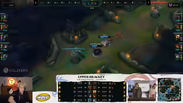 04:33:39Die Spieler nehmen eine kurze Pause für Essen, während Philipp und Koko das laufende Finalspiel kommentieren. Die Draft-Phase wird genau analysiert: Uri wird als First Pick genommen, gefolgt von Syndra-Ban, was als smart erachtet wird, um das Uri-Matchup in der Mitte zu vermeiden. Auf der anderen Seite werden Malphite und Alistar gepickt. Die Diskussion dreht sich um mögliche Champion-Picks wie Silas, der noch offen ist, aber unwahrscheinlich für die Toplane. Kindred wird als sehr stark eingeschätzt und wurde erneut offen gelassen. Die Teams verfolgen unterschiedliche Strategien: Das eine Team setzt auf All-In mit Malphite und Alistar, während das andere Team eher auf Front-to-Back mit Jinx abzielt. Die Rolle von Fiddlesticks im Jungle und die Frage, ob er ohne Items effektiv sein kann, wird diskutiert. Die ungewöhnliche Aussprache von Fiddlesticks durch die Caster wird bemerkt. Die Draft-Phase ist spannend, da ein Last Pick offen ist und die Möglichkeit eines Yasuo Midlane in Betracht gezogen wird, da Malphite und Alistar gute Knock-Ups bieten. Die Elo der Midlaner wird verglichen, und es wird erwartet, dass Power of Evil als erfahrener Spieler das Matchup gewinnen sollte, selbst mit einem schwierigen Champion wie Vladimir ohne Items.