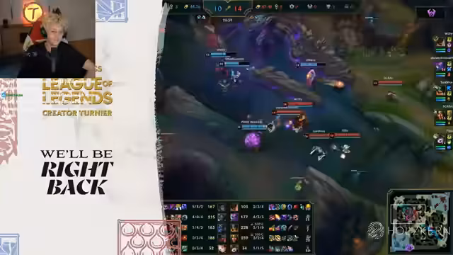 07:44:14Das Live-Stream-Turnier erreicht einen kulminierenden Punkt mit einer dramatischen Spannung, die laut Streamer als 'krasser als Worlds' beschrieben wird. Es gibt Diskussionen über die Identität der Spieler, wobei Aces' Name thematisiert wird und Spieler nach ihrer Veröffentlichung fragen. Eine Pause wird eingeleitet, während einige Spieler kurz toiletten gehen. Koko macht einen W bezüglich Hachi, der nicht in der Lage sei, Eintips zu kaufen, was später als Scherz entlarvt wird und die Stimmung auflockert.
