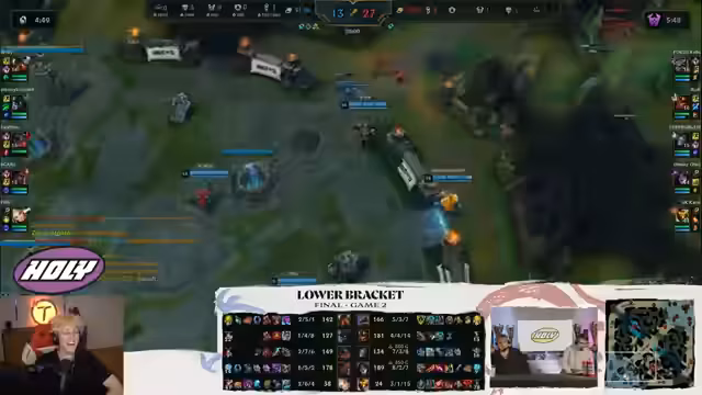 04:02:11Sascha, Toni und der Streamer planen, Amumu zu dritt zu töten. Amumu wird auf der Midlane erwartet, und Niki soll mit einem Auge auf Teleport achten. Der Plan scheitert, da das Team zu spät für die Wave ist. Ein weiterer Versuch, Amumu zu töten, wird geplant. Vayne tötet den Streamer mit Ult und Flash. Das Team versucht, Vayne zu töten, aber es scheitert. Der Streamer ist frustriert über die Stärke von Amumu. Das Team muss sich auf das Töten von Amumu konzentrieren. Niki wird angewiesen, ihre Sidelane zu spielen und nicht zu sterben. Sascha soll immer zum Streamer auf die Midlane kommen. Das Team versucht, Vision im gegnerischen Jungle zu bekommen, um einen Pick zu finden. Ein Kampf um den Drake führt zu einem Kill für das gegnerische Team, aber die Motivation bleibt hoch. Es wird betont, dass das Team auf Fehler der Gegner warten muss, insbesondere auf die Squishies. Der Streamer ist frustriert über die Stärke von Amumu und die fehlenden Drakes.