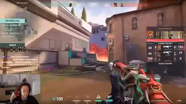 02:30:29Der Stream konzentriert sich auf ein intensives Valorant-Spiel, bei dem das Team um B kämpft. Es gibt mehrere Attacken auf die B-Seite, bei denen der Gegner mit Smokes und Präfire-Taktiken aggressiv vorgeht. Die Kommunikation im Team ist entscheidend, um gemeinsam in Kreuzfeuerpositionen zu gehen und den Gegner aufzuhalten. Trotz hoher Verluste bleibt das Team im Spiel und versucht defensiv zu agieren, indem man zurückzieht und auf eine Gelegenheit zum Gegenangriff wartet.