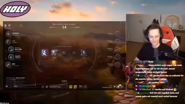 08:02:05Der Streamer wendet sich humorvollen Themen zu und fragt die Chat-Teilnehmer nach ihrer Haltung zu Füßen. Persönliche Vorlieben wie Arme im Vergleich zum Gesäß werden besprochen. Gleichzeitig kritisiert er die Entscheidung seines AD-Carrys, Lux zu picken, was zu einer angespannten Stimmung im Spiel führt.