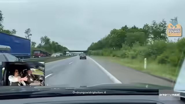 02:16:09Bei der Annäherung zur Mautstelle gibt es eine Verwirrung über die Bezahlung. Zunächst ist unklar, ob ein Beleg ausgestellt wird, was die Streamer verwirrt. Nach der Fahrt durch die Mautstelle wird festgestellt, dass es scheinbar kein deutsches System mit Ausdruck des Beleges gibt. Der Streamer vergleicht dies mit dem Vorjahr auf Madeira, wo ein Videobeweis für einen Stream notwendig war, um steuerliche Konsequenzen zu vermeiden. Gleichzeitig wird die Online-Präsenz des Streams auf Twitch erwähnt.