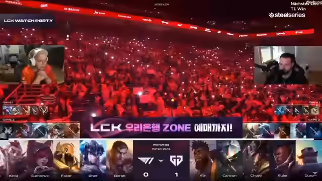 01:36:28Im Verlauf von Game 2 etabliert T1 einen klaren Goldvorsprung, der sich trotz einiger Unsicherheiten als stabil erweist. Der Streamer kommentiert die Teamkämpfe und die strategischen Moves, wie den umstrittenen Nexus-Push von Gen.G. Letztendlich entscheidet sich T1 klar für sich und gleicht die Serie aus. Er hebt die starke Leistung von T1 und die kritischen Fehler von Gen.G im Midgame hervor.