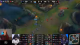 11:07:08Es kommt zu einem entscheidenden Teamfight um den Drachen. Gen.G nutzt ihre Kollektivstärke und perfekte Positionierung aus, um Top Esports zu besiegen. Der Streamer analysiert das Engagement von Gen.G und wie sie durch Canavies Ulti und Rakers Engage den Fight gewinnen. Top Esports verliert den Fight und damit auch das Spiel, was ihre Auslosung bei Worlds gefährdet.