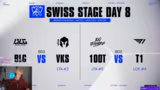 11:26:16Der Streamer informiert über die anstehenden Spiele am nächsten Tag, insbesondere über T1 gegen 100 Thieves. Er erklärt den Turnierbaum und die Auslosungsmechanik für die Viertelfinale. Es wird darüber spekululiert, welche Teams aufeinandertreffen könnten und wer als Underdog gilt. Besonders Movistar Koi wird als Außenseiter in ihrer nächsten Partie betrachtet.