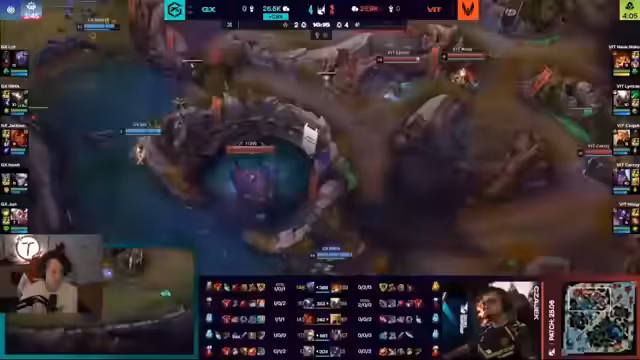 03:02:41Vitality zeigt einen strukturierteren und ruhigeren Spielstil, was sich von früheren Ansätzen unterscheidet. Trotz Hildesangs Abgang lebt sein Einfluss in Niski weiter, der nun die Support-Rolle übernimmt. Jax erhält Priorität trotz seiner ungünstigen Situation, was zu riskanten Spielzügen führt. Niski wirft Breakerwilder an, um seinen Flash zu halten, was sich als korrekter Call erweist. Ein potenziell gieriger Kill-Versuch wird vermieden, um den Drachen zu sichern. GiantX nutzt die Bot-Lane als Druckpunkt und verlagert den Fokus auf die Top-Side, um einen Teleport-Vorteil zu erzielen. Das Team öffnet beide Seiten der Karte und übt Druck auf den gegnerischen Asir aus, was zu einem Turmverlust führt. GiantX erzielt mehr Vorteile als erwartet, leistet sich aber vermeidbare Fehler, was sich in einem 0-2 Top und 0-3 Support niederschlägt. Es wird überlegt, den Herald aufzugeben, um stattdessen den Nah-Bot-Lein den Turm nehmen zu lassen. Trotz eines leichten Goldvorteils kämpft GiantX aufgrund kleinerer Fehler und Fehlentscheidungen. Die Solo-Lanes haben viel Arbeit gemacht und GiantX fällt immer wieder auf die Nase.