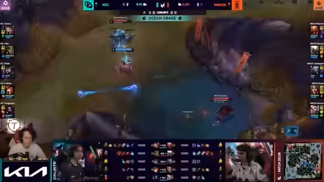 06:25:14Die Analyse des Spiels zeigt, dass Viktor durch den First Blood und das Sammeln von Stacks frühzeitig einen Power Spike erreicht, was für Vladi problematisch ist. Ein missglückter Dive von K-Corp führt zu einem Triple-Kill für den Gegner. Die Draft von K-Corp wird als problematisch angesehen, da sie darauf angewiesen waren, die Botlane zu stompen, was jedoch nicht gelang. Miss Fortune stirbt alleine, was die Situation weiter verschärft. Es wird kritisiert, dass K-Corp keinen guten Engage hat und die Miss Fortune keine Unterstützung erhält. Die Schwierigkeit, gegen Pantheon, Rakan und Gragas zu überleben, wird betont. Währenddessen spielt Super ein entspanntes Game und skaliert gut. Ein Lebenszeichen von K-Corp wird durch einen Dive in der Botlane gezeigt, der jedoch nicht ausreicht, um das Spiel zu drehen. Die Bedeutung von Mountain- und Hackstack-Drachen für K-Corps Scaling wird hervorgehoben.