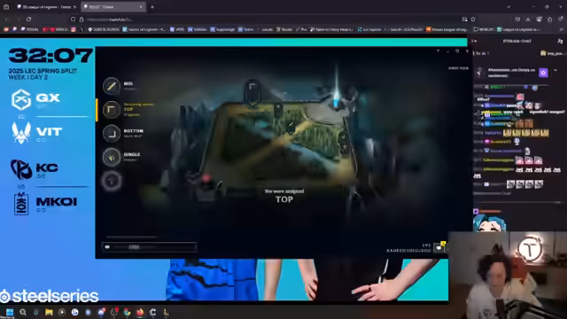 00:33:36Es wird überlegt, welchen Champion man spielen soll, und die Wahl fällt auf Camille. Die Entscheidung zwischen Ignite und Teleport wird diskutiert, wobei Teleport bevorzugt wird. Es wird die Frage aufgeworfen, ob Star Wars The Clone Wars gesehen wurde, was verneint wird, da kein Interesse an dem Franchise besteht. Es wird kurz über den Start der DC um 17 Uhr gesprochen. Call spielt heute bereits zum zweiten Mal, da es anders nicht möglich ist, alle Spiele unterzubringen. Es folgt eine detaillierte Beschreibung des Spielverlaufs mit Camille, inklusive Fehlern, Strategien und Beobachtungen zum Gegner. Es wird analysiert, wie das Spiel hätte besser laufen können und welche Fehler der Gegner gemacht hat. Abschließend wird erwähnt, dass heute in der LPL Nafiri, Jarl und Zed Midlane gespielt wurden, was als amüsant empfunden wird. Die KDA von Shadow auf einer Ferie wird hervorgehoben. Die APL wird ab dem 5. April wieder geschaut, da dann die Best-of-3-Spiele beginnen.