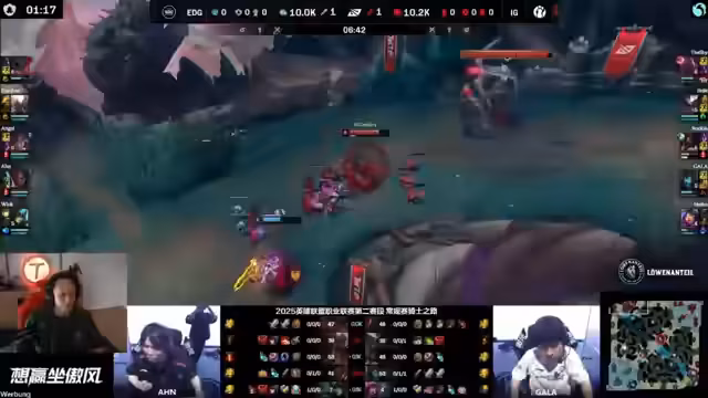 01:13:30Neben den europäischen und koreanischen Spielen wird auch die Situation in der chinesischen LPL-Playoffs behandelt. Es findet ein entscheidendes Spiel statt, in dem EDG gegen AdWord Gaming um einen Playoff-Platz antritt. Der Streamer erwähnt bereits ausgeschiedene Teams und bewertet die Chancen der verbliebenen Teilnehmer.