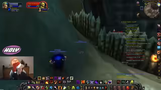 03:00:39Nach einer langen Reise per Boot, Flugzeug und zu Fuß erreicht der Streamer die Wüstenregion Desolace. Er führt verschiedene Quests durch, wie die Eskort-Quest "Bruder Anton" und die Jagd auf Kodos. Dabei nutzt er seine Dämonen strategisch: Die Sukubus, um Heilzauber von Gegnern zu unterbrechen, und den Voidwalker, um in Notsituationen zu tanken. Er lobt die Vielfalt seiner defensiven Ressourcen wie Schilde, Heilungen und Drain-Tank-Fähigkeiten.