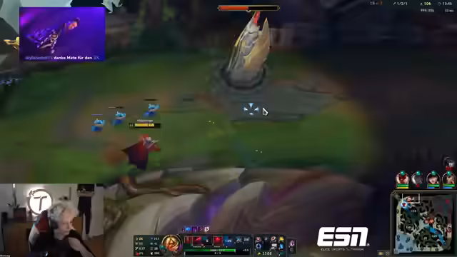 08:48:15Das Spiel selbst ist geprägt von den Aktionen des Pykes, der permanent Hook wirft und für Zerstörung sorgt. Streamer und Chat verfolgen gespannt die Vorhersage der Wettgemeinschaft. Der Pyke ist permanent am Hooken und sorgt so für ständige Action, was viele der gewetteten Kills erklären könnte. Es wird spekuliert, ob die erwartete Zahl von fünf oder mehr Kills erreicht wird, wobei der Pyke mehrere Kills und Assists sammelt. Das Team agiert koordiniert und kontrolliert das Spielgeschehen.